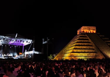 The Pyramids, a majestic backdrop for a Festival, merging ancient grandeur with modern music, creating an awe-inspiring and cultural experience.